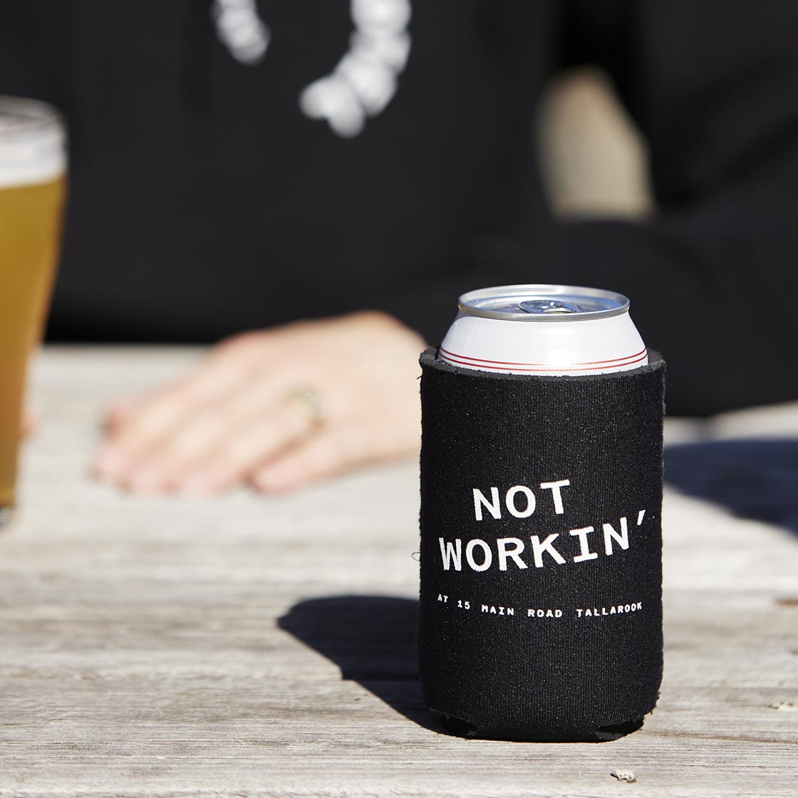 Don’t let the name fool you, this is our other just-as-hardworking stubby holder. This one says NOT WORKIN’ on it.
